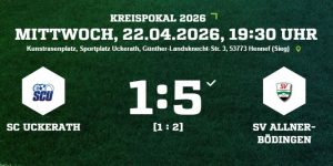 Unsere Frauen spielen am Mittwoch, 22.4.2026 um 19.30 Uhr im Halbfinale des Kreispokals beim SC Uckerath:
