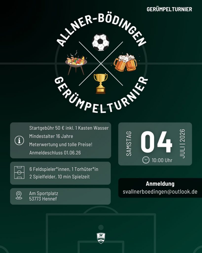 Am Samstag, den 04. Juli, laden wir euch zum zweiten Gerümpelturnier des SV Allner-Bödingen ein!
