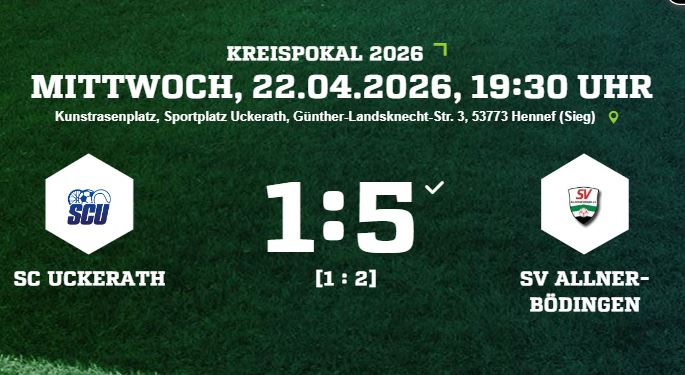 Frauen im Finale des Kreispokals Veröffentlicht am 23. April 202623. April 2026 von Webmaster Unsere Frauen haben gestern durch einen 5:1 Sieg beim SC Uckerath das Finale des Kreispokals erreicht. Im Finale trifft man auf den TuS Birk.